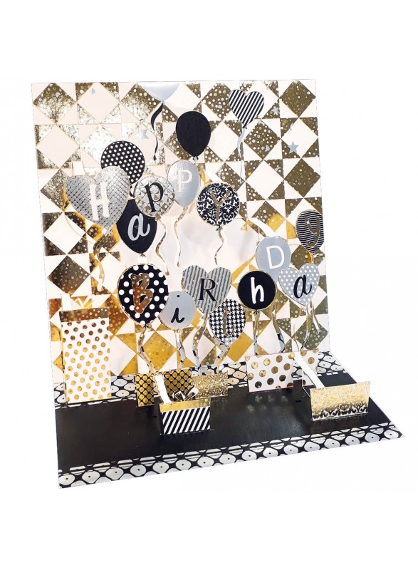 Carte Pop-up 3D avec dorures, paillettes et découpe laser.