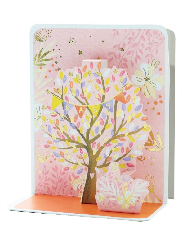 Carte Pop-up 3D avec dorures, paillettes et découpe laser.